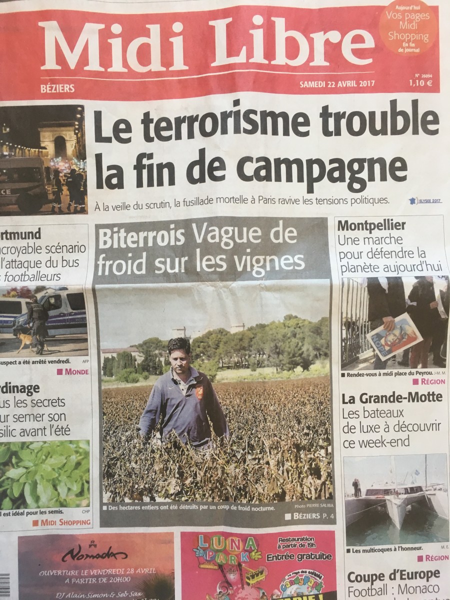 L’assurance gel (très onéreuse) n’étant pas souscrite, sur un domaine où la dernière gelée remontait à 1991, c’est à la fois une catastrophe naturelle, mais également économique et financière qui s’abat sur notre entreprise viticole familiale et nous touche de plein fouet.